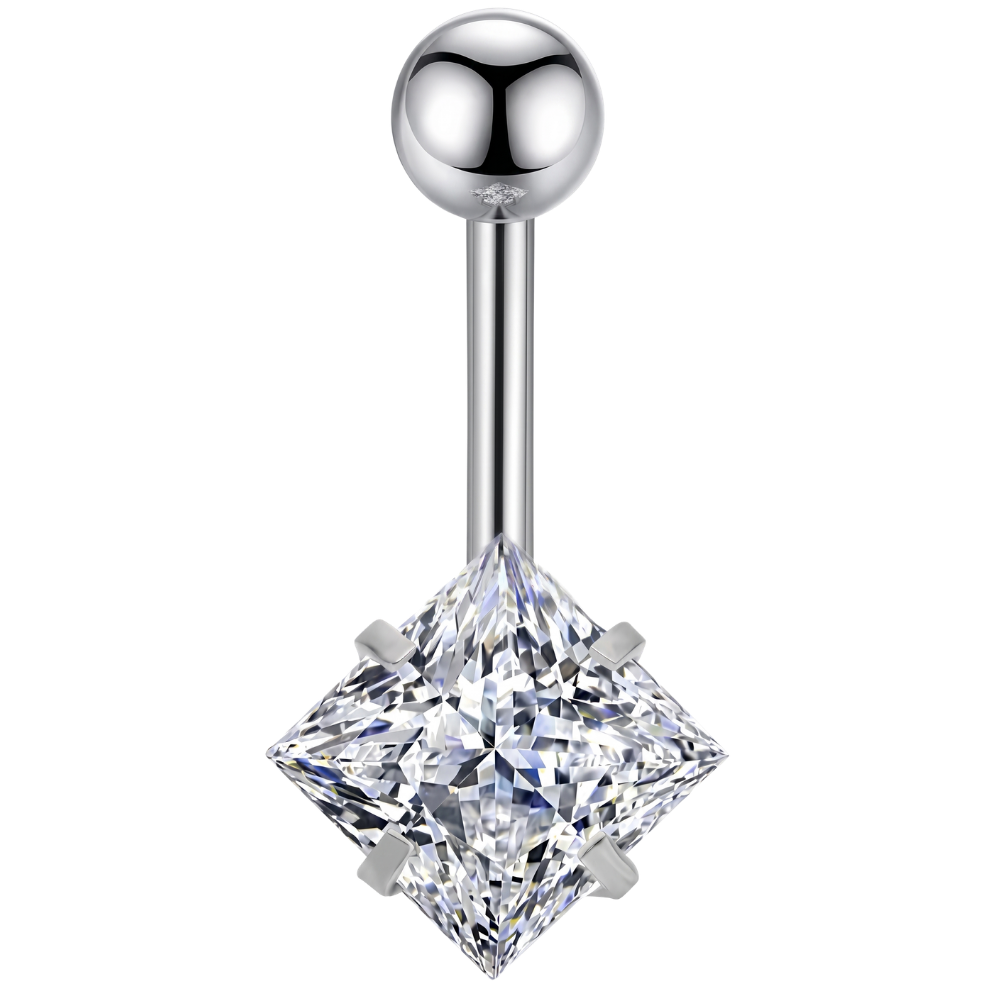 Stalowy Kolczyk Do Pępka - Prostokątna Cyrkonia