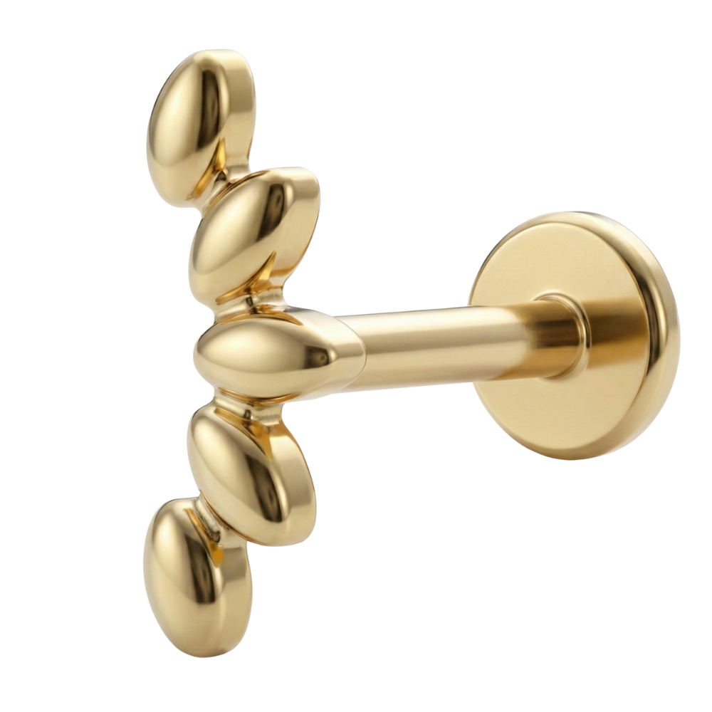 This charming Titanium Decorative Labret - Leaves is a piece of jewelry inspired by nature, bringing a touch of freshness and subtle elegance to your piercing. Crafted from certified G23 titanium, it ensures full biocompatibility and maximum comfort, making it a safe choice even for the most sensitive skin. The delicate plant motif with a smooth, glossy finish beautifully highlights the anatomy of the ear, lending any style an ethereal and feminine touch. It's a perfect choice for helix, flat, or lobe piercings, perfectly complementing ear stacks with its unique, organic design.